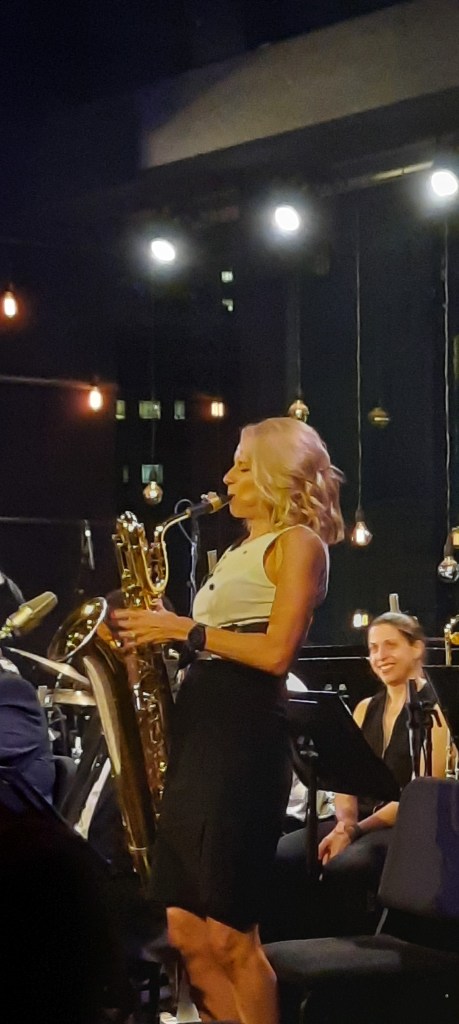My relation would be incomplete if I hadn’t mentioned Lauren Sevian, a fantastic baritone saxophonist, and Sarah Jacovino on trombone. Ladies, what a beautiful sense of music timing! Yasushi Nakamura on a double bass was spectacular in his music craft. I saw him with Christian Sands earlier and he is THE musician. Also, Oscar Rossignolli stood out with a great piano sound.